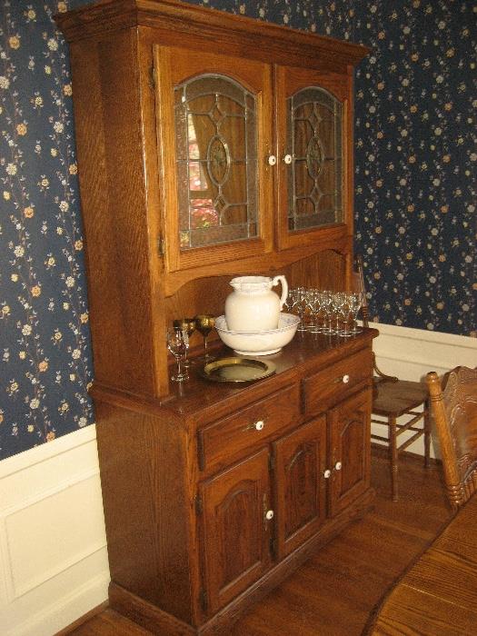 Join us for a nice downsizing sale in a beautiful Mission home filled with fun antiques, clean household items, a Husqvarna riding mower, and much more! Antique tiger oak double-door server with mirrored backsplash Oak breakfront china cabinet with leaded glass doors Oak clawfoot pedestal table w/ leaf & custom table pads Set of 8 oak pressed back dining chairs Painted pine hall table Boos Block butcher block Antique highchair Wingback recliner Pine 2-door 2-drawer cabinet Oak media stand 3-panel screen Wooden easel Metal easel Painted bench Pair of rocking armchairs Small 2-door white-painted bathroom cabinet Twin oak frame daybed...