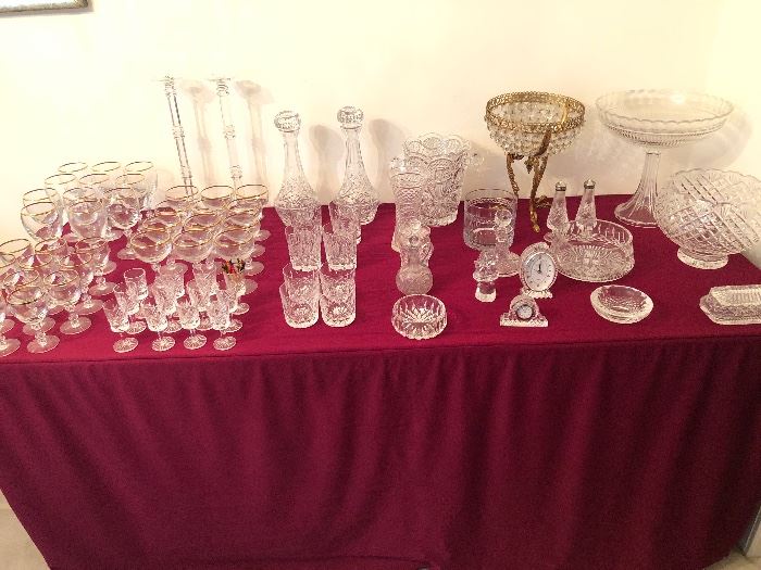Nice Apartment full at Villa Medici Brass & glass cocktail table, end table & console table Leather L-shaped sectional sofa Glass-topped kitchen table Set of 4 tuxedo side chairs Drexel dresser, chest & nite stand King size bed with newer Beautyrest mattress Stanley entertainment wall unit Pedestals Reed & Barton Francis I sterling flatware Much silverplate Silver plated tea set Crystal including Waterford Set of Royal Doulton china Loads of costume jewelry Lot of women's clothing (many new with tags) Purses Linens Lot picture frames Kitchenware Holiday items Patio furniture Concrete statuary Much Miscellaneous