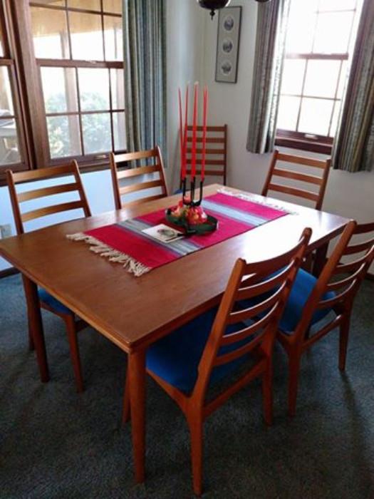 Complete household. This is a partial list! Mid Century Modern Furniture Teak Draw Leaf Table and 6 Chairs - Bernhard, Pederson & Sons Denmark, Chrome Leg Loveseat - Komfort Denmark, Green Accent Chair - Komfort Denmark, Accent Chair - Vargus Furniture, Multi Colored Accent Chair, Smoke Glass Top End Tables - C.A. Karlan Furniture, Teak 2-Tier Sofa Table, Teak Bench, Long Dresser w Mirror and Matching Bed, Other Household Furniture Dining Room Table with 6 Chairs, Painted Drop Leaf Table, Microwave Cart, Empire Table, Modern Recliner, Fine Art R. Hatke Signed Print, Leslie Wilton Blacksheep Studio Heavy Art Glass Vase,...
