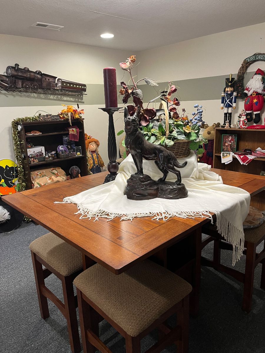 This sale has wonderful items included: dining tables and chairs, living room sets: couch, loveseat, end tables, coffee table, bedroom furniture: queen beds, twin bed, toddler bed, crib, dressers, shelves, pool table and equipment, sports equipment, games and puzzles, train set with village set-up, vintage Star Wars toys, vintage Fisher price toys, children’s toys, lawn decor, kitchen items, household items and decor, yard decor, linens and clothing, hats, golfing equipment, office furniture and supplies, audio equipment, small kitchen appliances, seasonal decor, records and cd’s, books, jewelry, wii gaming system, and more!, Make sure you check back we will be adding...