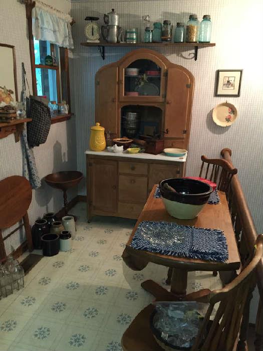 A Big Sale by The Junque Ladies!!!!!!!!!!!!!!!!!!!!!!!!!!1 House, Basement, & Garage Packed!!!!!!!!!!!!!!!! Hooker Armoire Sectional Sofa Green Painted Hoosier Style Kitchen Cabinet Oak Hoosier Style Kitchen Cabinet Twin Bunk Beds Cannonball Maple Bed Oak Pedestal Table Primitive Cabinets Old Tools Bentwood Chairs Country French Dining Set Early Brass Bed Early Metal Twin Bed New Queen Sleigh Bed Mahogany Corner Cabinet & Side Board Butcher Block & Cast Iron Large Work Table Trunks Console Stereo Sewing Machine Fiesta Franciscan Lenox China Haviland Limoges China Fostoria American (82 Pieces) Majolica Weller Goebel Schmid Figurines Cup & Saucer Collection Pyrex Silver Plate &...