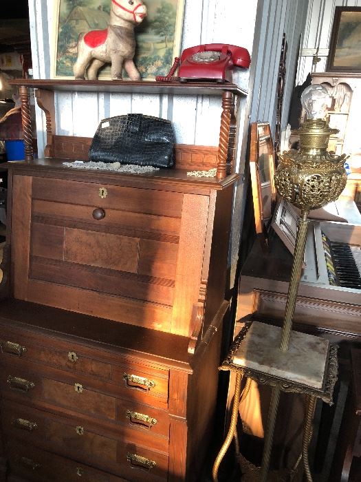 Antiques, Collectables, Sheet Music (Blues, Stomp, Jazz, Latin translated to English), Furniture including a Pair of Windsor Chairs from 1718, Drop Leaf labels, armoire, cherry wood furniture including a hutch, circa 1800 English Doctors Surrey, pair of Coatbridge, Scotland 15’ cast iron gas lamp posts w copper tops dated circa 1800.