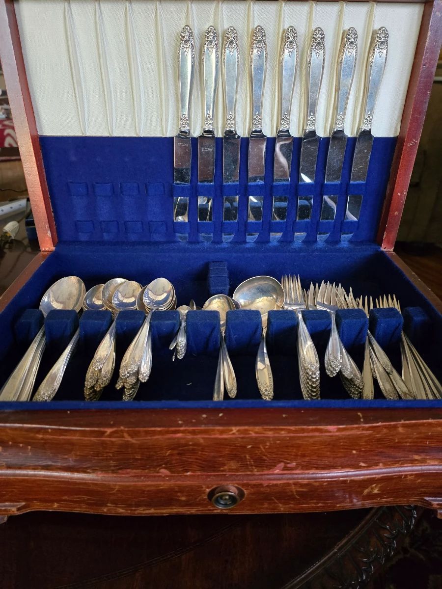 This beautiful downtown Lake Charles has something for everyone. Magnalite Roaster, Wool Rugs, Gay Plaid dinnerware by Blair, Johnson Bros. Dinnerware, Prelude Sterling Silver Flatware, Crystal, silverplate, Drexel Full Size bed, Broyhill Attic Heirlooms Solid Wood Dresser/Buffet, Dining Room Table, Round Coffee Table, end tables, lamps, artwork, costume jewlery, Christmas decor, toys, ladies clothes and shoes, dryer, and more.