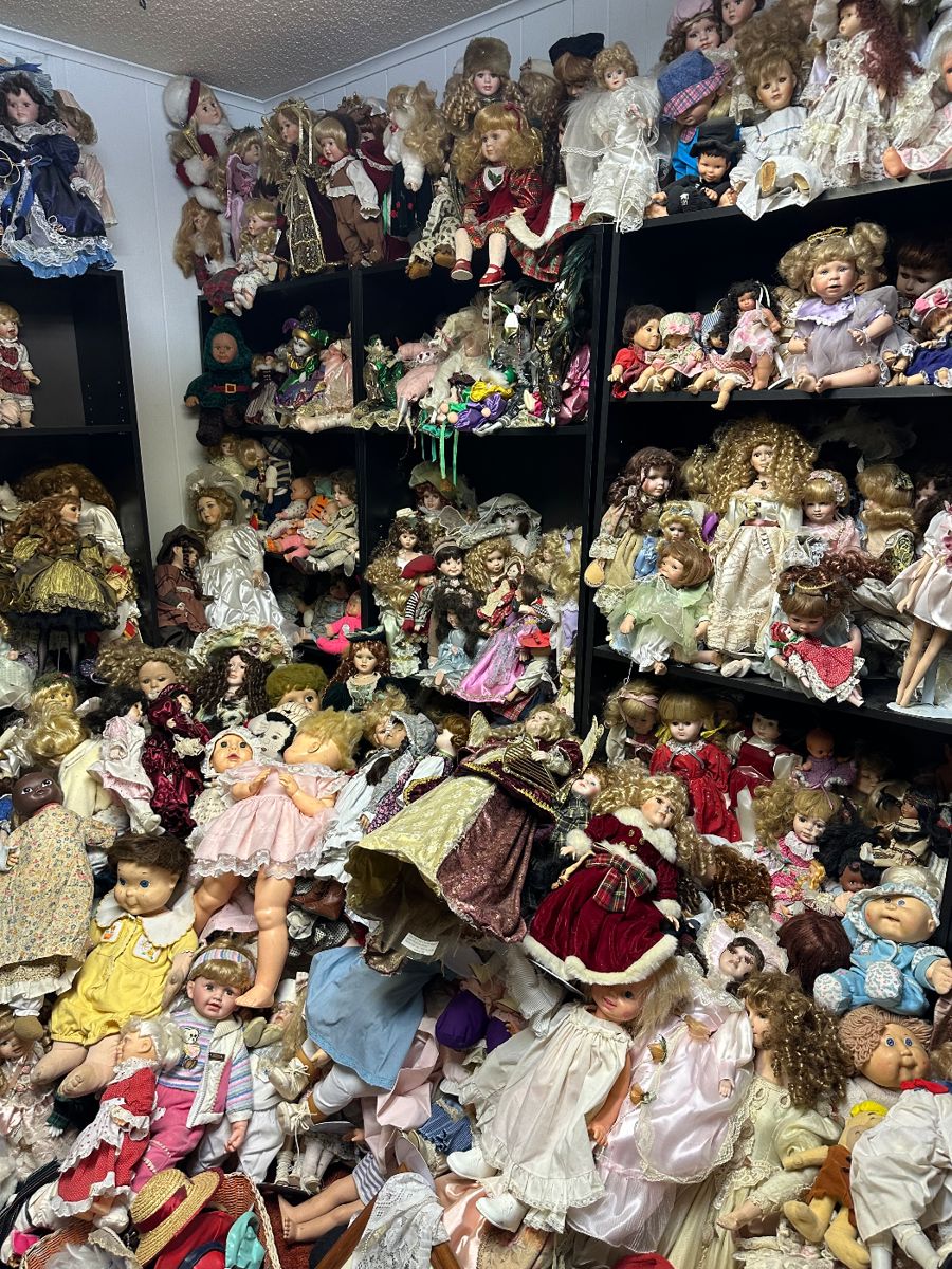 A huge selection of dolls, cape cod ruby red, cobalt blue, Louis LaMour books etc. Come find your treasures!