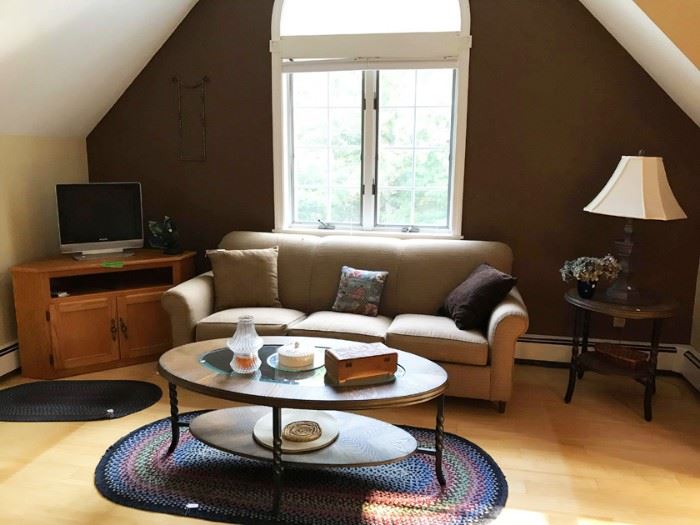 Antiques, collectibles, decorative items furniture including Basset sleep sofa and others, Laz-boy recliner, coffee tables, end tables, sofa table, antique commode, drop front desk, flat screen tv, tv cabinet, oriental rugs, braided rugs and others. Leather recliner, book cases, books, wicker furniture, rockers, wing chair recliner, occasional chairs and tables, lamps, framed artwork, electronics, ship models, records, kitchenware and cookware, small appliances, china cabinets, chinaware and glass, desk, office supplies, bird's eye maple queen bedroom suite, (queen bed, armoire, night stands) cedar blanket chest, luggage, Queen bed, armoire, storage cabinet triple dresser and night stands by Thomasville, costume Jewelry, loads...