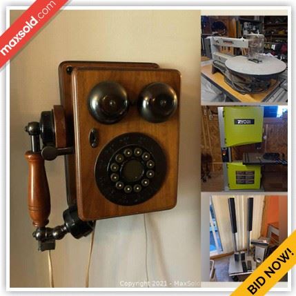 WHAT IS IN THIS AUCTION? This online auction features outdoor toys such as a play lawnmower, playhouse and more, toys, furniture such as a wood hutch, entertainment cabinet, chairs, stereo cabinet, desk, bookshelves, armoire, patio chairs, media cabinets, midcentury dresser and more, desk lamps, vacuum, Golds Gym exercise equipment, figurines, bike rack, sports items, luggage, Christmas decor, tools such as a band saw, planer, chop saw, wet vac, hand tools, and more, hardware, wood, vintage sled, electronics and much more! HOW TO ACCESS THE AUCTION? Simply click here: MaxSold TO BID PLEASE REGISTER: Copy and paste this link to your...