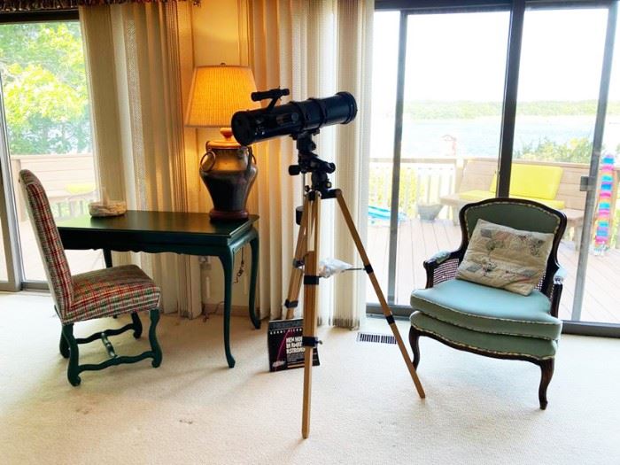 A New Seabury home on the shore of Jehu Pond shows all the accoutrements of gracious living and exotic travel! Mixed with Mayan and Mexican souvenirs you will find contemporary art, a 19thC portrait of a lady, a few ornate Victorian accessories, Chinese porcelains and an overall penchant for all things French! Special listing includes - Custom scrubbed pine farmer's table and set QA style chairs, scrubbed pine hutch with open bottom, painted French style writing table & chair, diminutive French style chest, glass & iron coffee table, Vintage wrought iron porch furniture, French Empire style King bedroom suite with...