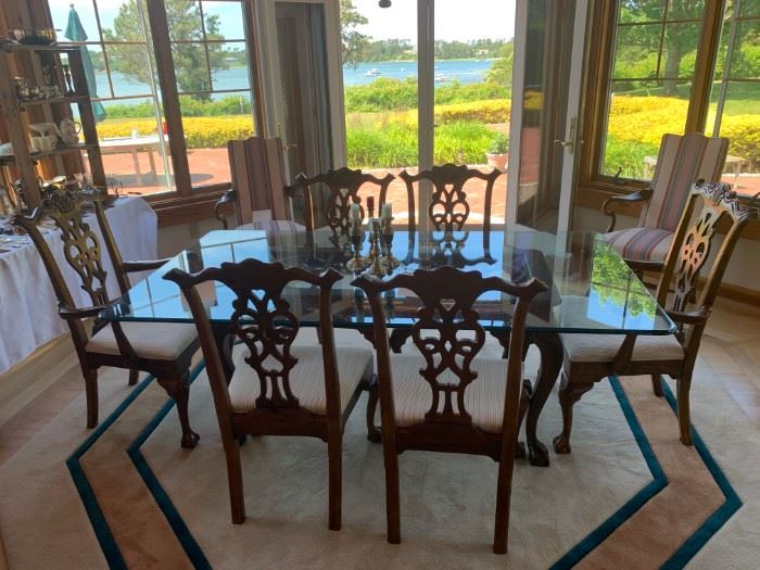Fine leather couch & chairs, upholstered pieces, dining set, glass-top table w/ 6 carved chairs, 3 bedrooms of furnishings, large pine table, TVs, exercise items, fishing and boating needs, holiday decorations and china, glassware, steins, 1st day covers, tools, and more.
