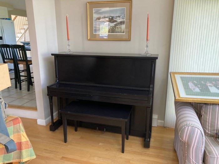 Coastal vibes. Blue, Aqua, colors of the summer sea and beach sand. Chic Cottage Living, relaxing ambience. This long, time family gathering spot in North Falmouth welcomes you to a Cape Cod summer. High end cottage style furnishings and decor include Queen bedroom suite by Broyhill, French country dining table with extension, Lexington cottage pine serpentine dresser and armoire, tastefully upholstered Clayton Marcus sofa and club chairs, 3 (!) sets matching sofas & love seats in beach sand stripes, pr. twin beds & stand by Lexington; Claire Murray area rugs and scatters, palace size Bidjar carpet in blues, Joshegan room...