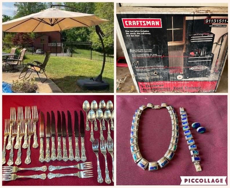This estate sale has a number of furniture pieces, silver, books and costume jewelry. Find something to make your day.