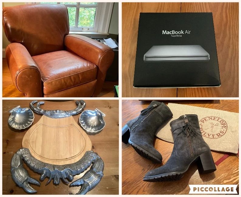 This moving sale has lovely current furniture including Pottery Barn and Restoration Hardware pieces. There are also toys, storage containers, Christmas and sporting items as well as a few antique pieces. Very nice!