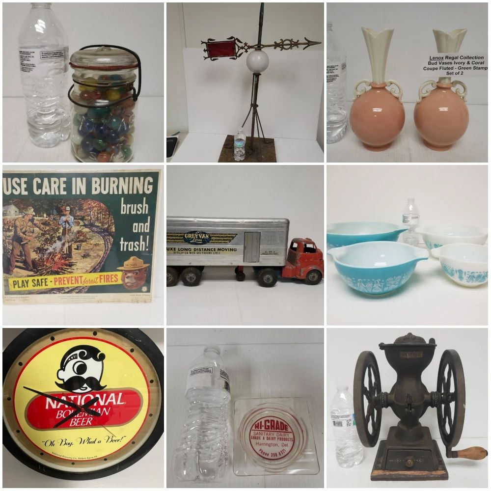 1/26/25 - Special Antique Consignment Auction Bidding Closes: Sunday, January 26th, 2025, Soft Close Starting at 6pm, 1 lot closes every 10 seconds with a 2-minute extended bidding. Preview Date: Sunday, January 26th, between 1pm & 3pm Pick-up Date: Pickup will be by appointment only on Tuesday, January 28th, between 10am & 7pm https://bidtrice.com 701 Lincoln St, Denton, Maryland 21629 1: Vintage Hillside Poultry Farm Thermometer- Selbyville, DE ( Phone 139 R-21 ) ~ 2: Vintage Olin Rain Gauge Recorder - Johnson Brothers Harbeson, DE ~ 3: Vintage Hi-Grade Dairy Advertising Ashtray Harrington, De ~ 4: 1988 Assateague Island AMSA...