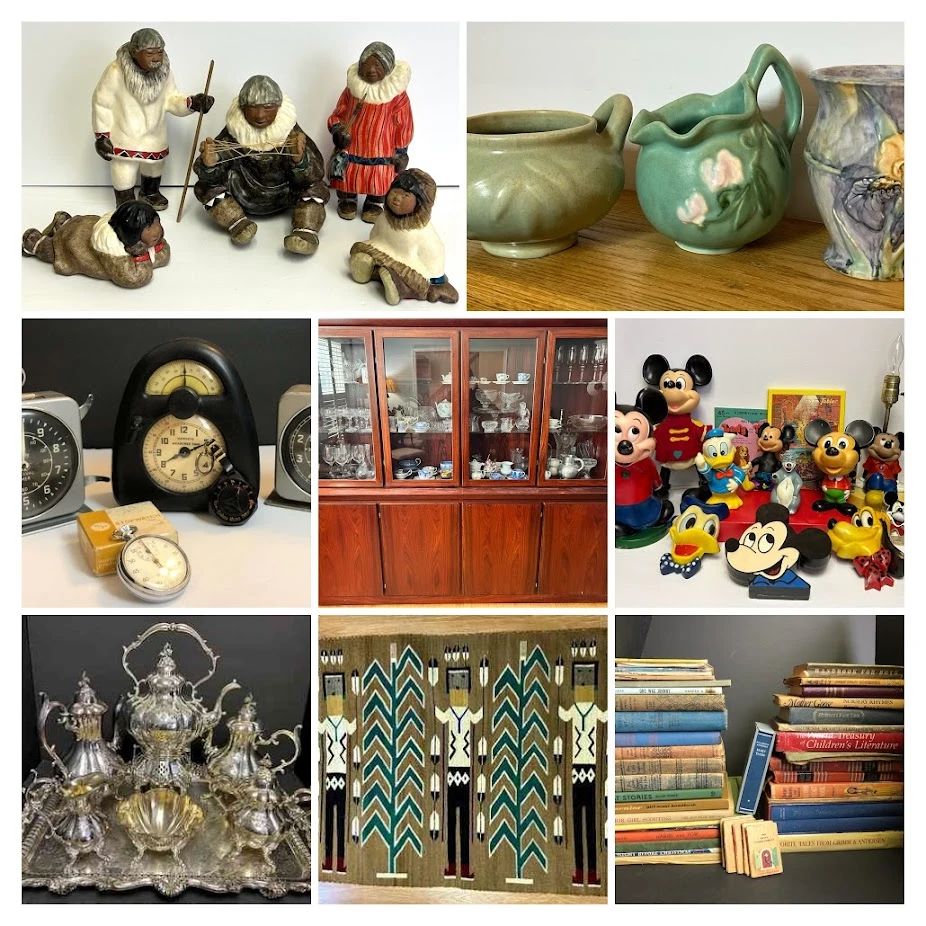This is the second sale in this teeming with treasures home. The homeowners' knowledge of collectibles and creative spirit is evident throughout. Highlights include: sterling silver, art from Edna Hibel; art pottery including an extensive Weller Pottery collection; indigenous and Native American art and craft, including Navajo Rugs, C Alan Johnson Figures; MCM, antique and vintage furniture including Skovby; vintage books and records; sewing and quilting items; vintage glass including uranium glass; decor; Halloween and Christmas; Baskets; Gardening items; kitchenware and more.