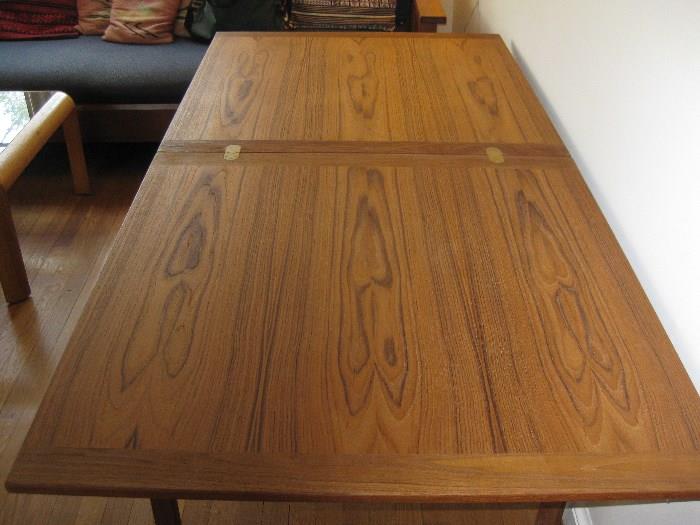 FURNITURE and FURNISHINGS: Danish Modern Furniture: 33” x 66” hinged-top teak table (closes to 33” x 33” square table); Vejle 27” x 27” teak end table; 2 matching teak-and-upholstered chairs and 1 single teak-and-upholstered chair; 5 upholstered teak dining room chairs; matching triple dresser, nightstand and wall mirror. Mid-Century Furniture: L-shaped desk; additional desk; 2 glass-front shelf cabinets; 50’s cabinet; double bookshelf unit; 2-piece blond wood bedroom set, consisting of full-size bed with a storage headboard and double dresser with beveled mirror; laminate dinette table with metal legs and 1 leaf; china cabinet; 2 floor lamps; multiple table lamps; wall-mounted...