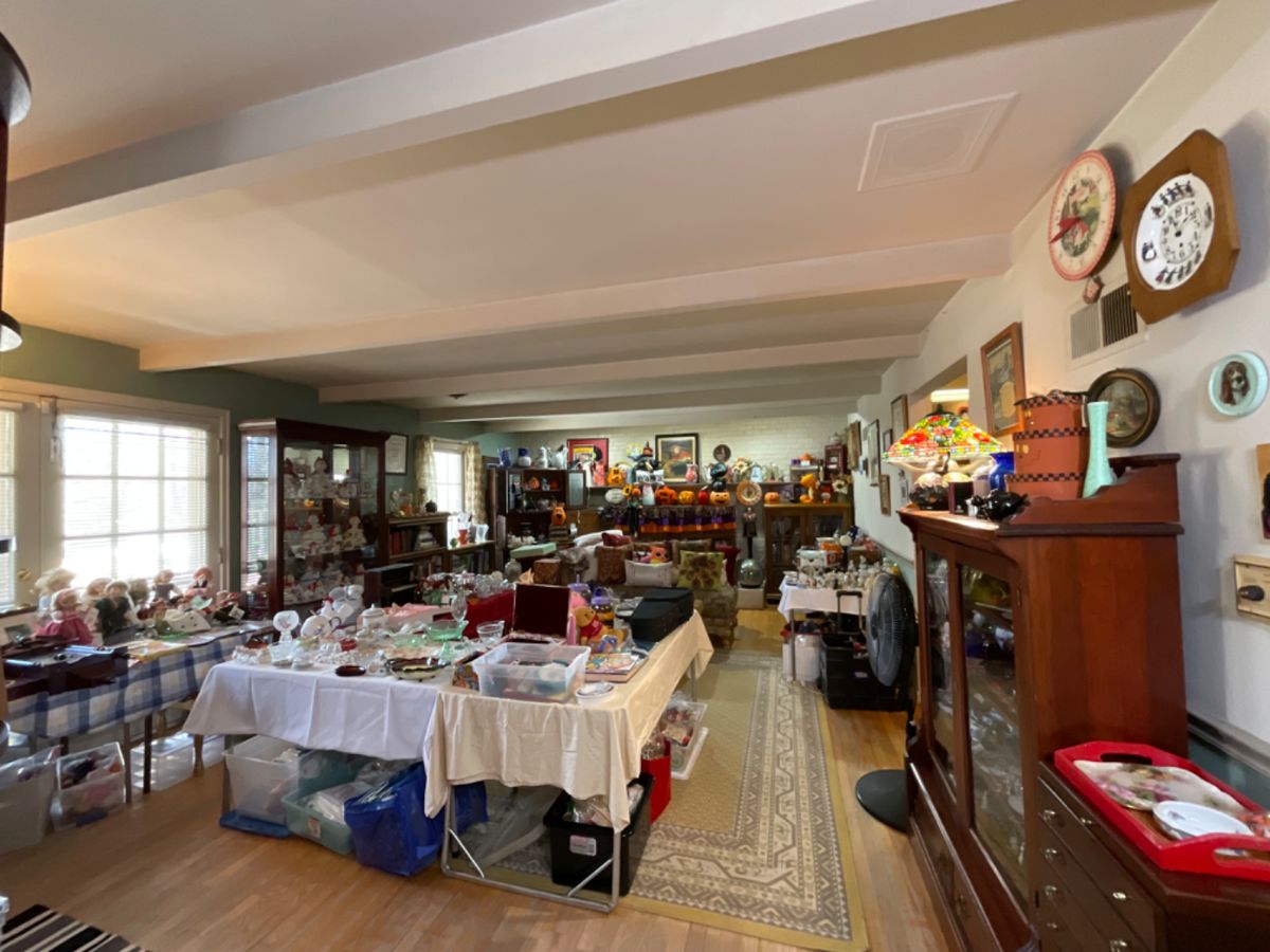 This is a very beautiful house filled with furniture, beautiful home decor, artwork, ton of jewelry, Kieninger grandfather clock, tons of art supplies, lamps, Clothing, hundreds and hundreds of halloween costumes, hundreds and hundreds of purses, vintage Christmas Collection, silverware, kitchenware, garden decor, dvds, comics, toys, records, games, tons of books, and Much Much More.