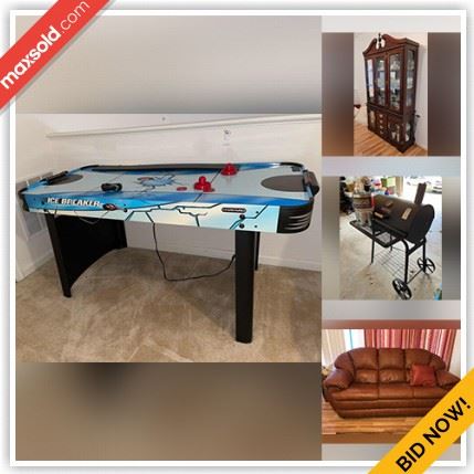 WHAT IS IN THIS AUCTION? This online auction features furniture such as a sofa table, loveseat and sofa, wingback chairs, coffee table, dining table and chairs, Berkline recliner, bar stools, nightstand, dresser, futon and more, smoker grill, massager, air hockey table, CDs, faux flowers, linens, small kitchen appliances, kitchenware, luggage, wall art, Christmas laser lights and much more! HOW TO ACCESS THE AUCTION? Simply click here: MaxSold TO BID PLEASE REGISTER: Copy and paste this link to your browser https://maxsold.maxsold.com/register WHEN DOES THE AUCTION CLOSE? Everything will SELL BY Wednesday December 15, 2021 8:00 PM regardless of price. Bidding starts...