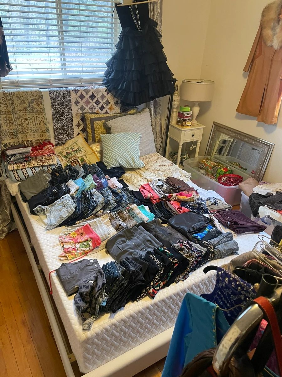 Dig Detroit is proud to present a packed (and kind of dirty) pair of houses plus a garage in a beautiful spot in Belleville. Featuring: -Glassware: Lots of Depression glass (Uranium Glass, Red Glass, Cadmium Glass, Vaseline glass and more), Carnival glass, Mid-century barware, Pyrex, Midcentury china, Ashtrays, Hall, Fenton, Blenko, Tons of Canning Jars (all sizes, blue glass, glass on glass) etc. -Kitchenware: Vintage Tupperware, Enameled Cast iron (Dansk, Le Creuset, etc.), Cabinet fridge, flatware, Fiestaware, Harmony House Melmac Set, etc. -Clothes: lots of y2k, Some 40s-70s, bohemian ethnic-ware, Betsy Johnson, Bebe, etc. -Fabric and Sewing stuff: Vintage Chenille...