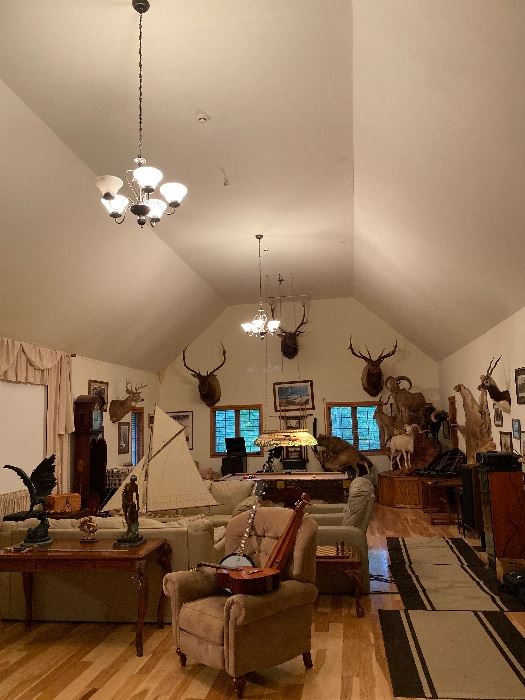 Amazing Collection Of Taxidermy & High End Stereo Equipment - Authentic African Zebra Hide - Authentic African Lion Skin Taxidermy - Large Collection Of African & Domestic Taxidermy Animals & Mounts - Michael Jackson Encased & Signed Billie Jean Outfit With Hair Lock & Towel Piece - Paul Mccartney Signed Guitar - Eagle Bronze After Jules Moigniez - Nude Girl Bronze After Etienne Falconet - Glenn Giuttari Harpsichord - Leonard Bernstein Signed Program - Games Table & 7 Chairs By King Oak - Claw Foot & Glass Cocktail & End Table - Pair Of Leather Sofas By Natuzzi - Studded...