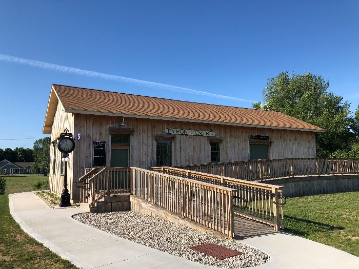 Sale is located inside the historic 1800's Byron Center Train Depot. All Merchandise at this sale is surplus and excess inventory from the Byron Center Historical Society that they can no longer use at their Museum or have duplicates of. Net proceeds from this sale will go to the Historical Society for their ongoing operations. Full size outhouse made with roughsawn wood and completely authentic design (will be assembled for the sale and can be easily disassembled), Antique School Desks, Antique Theater Seats, Antique Denoyer Geppert History Aids School Map and other school maps, Antique Dresser with mirror, Antique Whirligigs,...