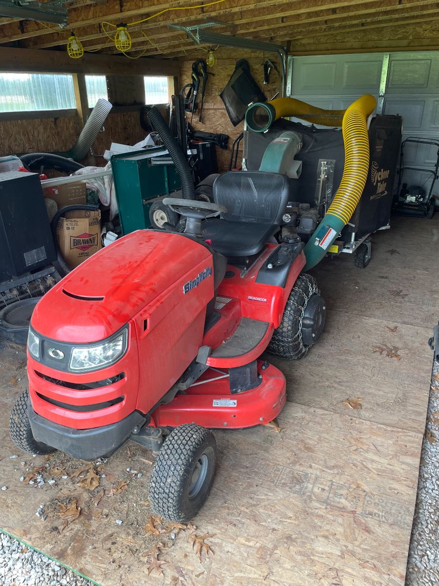 Lots of wood working tools , riding simplicity mower with leaf vac, crafts , tons of Xmas decos, furniture , sleep numbers mattress .