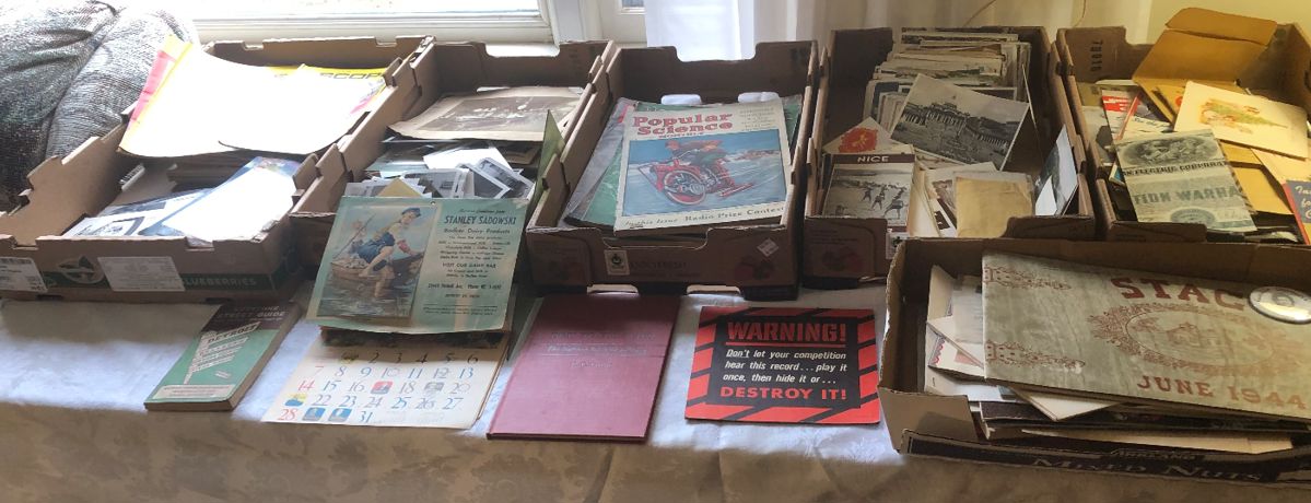 Ephemera, photos, framed pictures and art, costume jewelry, toys, books, clothing, smalls, kitchenware, full garage and basement.