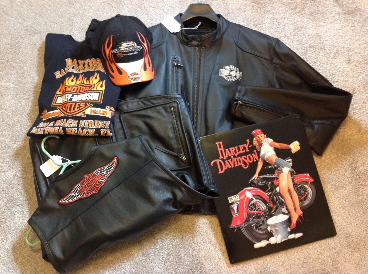 Attractive Apparel ... Cool Collectibles ... Fine Furnishings And a Wall-to-Wall Tool Wrapped WORKSHOP (It's a Guy's Wonderland)! Collectible Apparel/Items: Harley-Davidson Coats, T-Shirts, Vest, Hats, Gloves, Working Motorcycle Table Lamp, Sign, 6-Pack Beer, Helmet/Bag; Corvette Coats, T-Shirts, Hats; Peanut Dispenser, Elgin Coffee Mill Grinder, Adlake RR Lantern, Spring Style Horse Rocker, Farmall Child's Pedal Tractor by ERTL, Evel Knievel Scramble Toy Van, Six Million Dollar Man Transport Station, University of Michigan Jackets, Sweatshirts, T-Shirts, Hats and Accessories; Coca Cola Glasses, Vintage World Globe on Floor Stand! Furniture: Vintage Golden Oak 7-Drawer Dresser w/Mirror and Matching 5-Drawer Tall Chest w/Small Mirror...