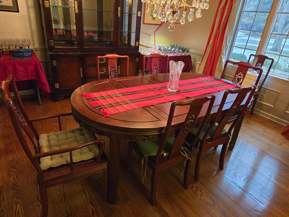 We have a full house with lots of high end items for sale such as.. Rosewood Oriental dining table with chairs, Large Oriental china cabinet, Very interesting carved Oriental tables, Sofas, fainting couch, Recliners, Floor lamps, Area carpets, Mens clothes from Large to XXL, T shirts-and Polos-a real collection--hundreds, Large to XXL, Wonderful high end men's coats, Name brand Sweaters, Men's Shoes 11-12, Travel Tees, Books, Shelves and shelves of fabulous Bird books, a collection of Cook books, Side tables, Coffee tables, Wall art, Prints, Paintings, Dressers, Pulaski King bedroom set, light colored bed and nightstand set, Side tables, Model...
