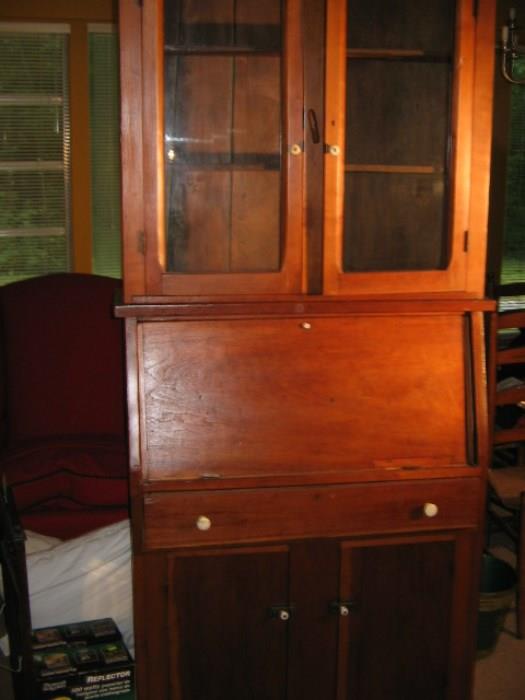 SPRAWLING RANCH FILLED WITH COLLECTOR'S TREASURE! ANTIQUES AND PRIMITIVES THROUGHTOUT! 2 PC. PRIMITIVE CUPBOARD, PRIMITIVE HANGING SHELVES, QUEENE ANNE TEA TABLE, 4 RUSH SEATED LADDER BACK CHAIRS, MAHOGANY KING SIZED CHIPPENDALE CHAIR BACK HEADBOARD, 2 TWIN MAHOGANY BEDS, PRIMITIVE PINE TRUNK, PRIMITIVE TOOL BOX, RED WOOL WING BACK CHAIR, 19TH CENTURY WINDSOR CHAIRS, 19TH CENTURY CRADLE, LEATHER LOUNGE CHAIR & OTTOMAN, ANTIQUE GRAPHICS & ENGRAVINGS, PRINTS AND PAINTINGS OF VENICE, ANTIQUE IRON LIGHTING, TOLLE LIGHTING, GRINNELL BROS. SPINET PIANO, ABORIGINAL ARTWORK & GRAPHS, LARGE METAL SCULPTURE "LA METALLURGIE", MEISSEN FIGURINES, SILVER TEA SET, VICTORIAN SILVER SAMOVAR, ANTIQUE METAL LAMPS, ANTIQUE...