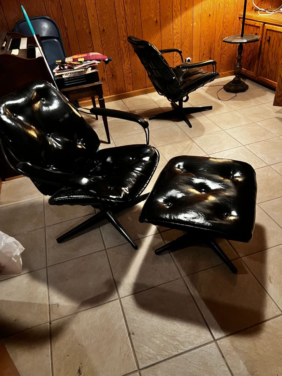 MCM (2) Homecrest Swivel Wire Lounge Chairs with Ottoman, JVC Retro Gaming TV 20 Inch, Smith Brothers Floral Sofa, Small Kitchen Table with 4 Chairs W/ Leaf, Twin Bed and Dresser, Small Sleeper Sofa, Sofa Table, Side Table, (2) Art Deco Slag Glass Table Lamps, 11 Piece Calphalon Stainless Pan Set with Lids, 5 Piece Vintage Corningware Green Medallion Set Rare, 3 Piece Vintage Pyrex Ribbed Soufflé Baking Bowls, 5 Piece Vintage Rubbermaid Bowls with Lids, 3 Silverware Sets Vintage, Vintage Wear Ever Electric Wok, Vintage General Electric Food Processor, Vintage Sunbeam Mixmaster, Vintage DuraCraft Portable Heater, Vintage Fostoria American...
