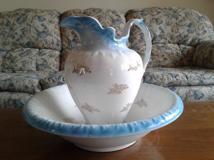 LOTS OF SQUARE FOOTAGE TO COVER IN THIS CLEAN HOME FURNITURE: theater style sectional with center sleeper oak queen bedroom suite oak roll top desk oak hall bench several oak side tables oak theater wall unit oak desk chair oak & cherry book shelves oak bar stools drop leaf table rattan patio furniture (6 pcs) nesting tables GLASS & POTTERY: tiffany & co candlesticks chinese tea sets & figurines waterford crystal smith & phillips pitcher & bowl wedgewood FULL KITCHEN: dishes cookware glassware barware small appliances & utensils SMALLS: new & vintage hanging & ceiling fixtures bedding & linens (2)...