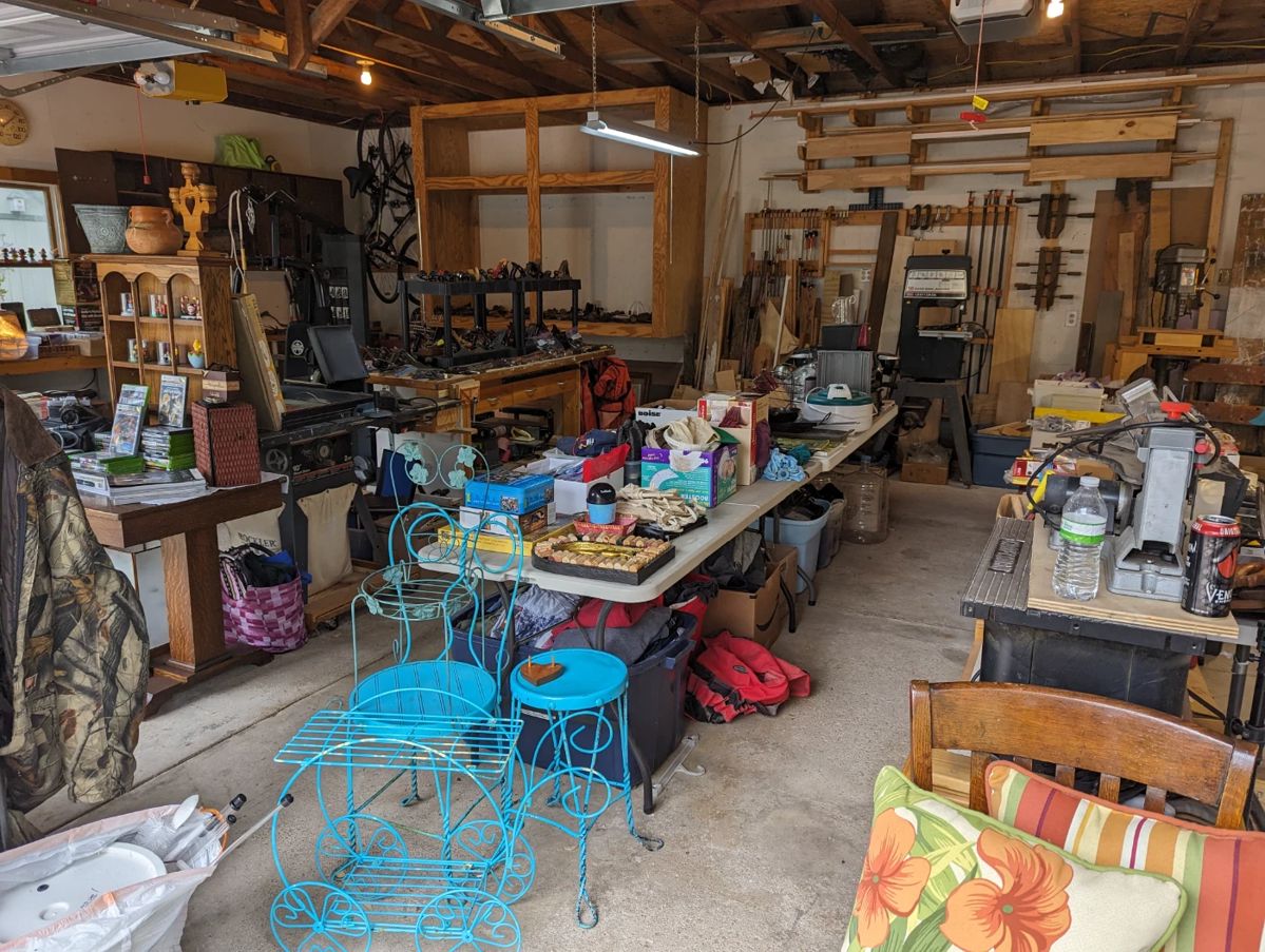 This is a nice smaller sale in the garage only. No one will be allowed in the house. Lots of Hand and Power tools Nice Wet Saw 12 Inch Band Saw Omega Drill Press Table Saw Large Collection of Reconditioned Plans Vintage Lps Civil War Books Marcy Weight Machine Nice Schwinn Exeresis Bike Antique Oak Library Table Watt Knot Shelf Vintage Electronics Corn Hole Game Dvds and Cds Life Magazines Vintage Tools Small Porter Cable Air Compressor Yard Seat on Wheels Antique Tool Box Work Cabinets on Wheels Xbox 360 Game Xbox Games Some Nice Kitchen Items Alum. Ladder Lawn...