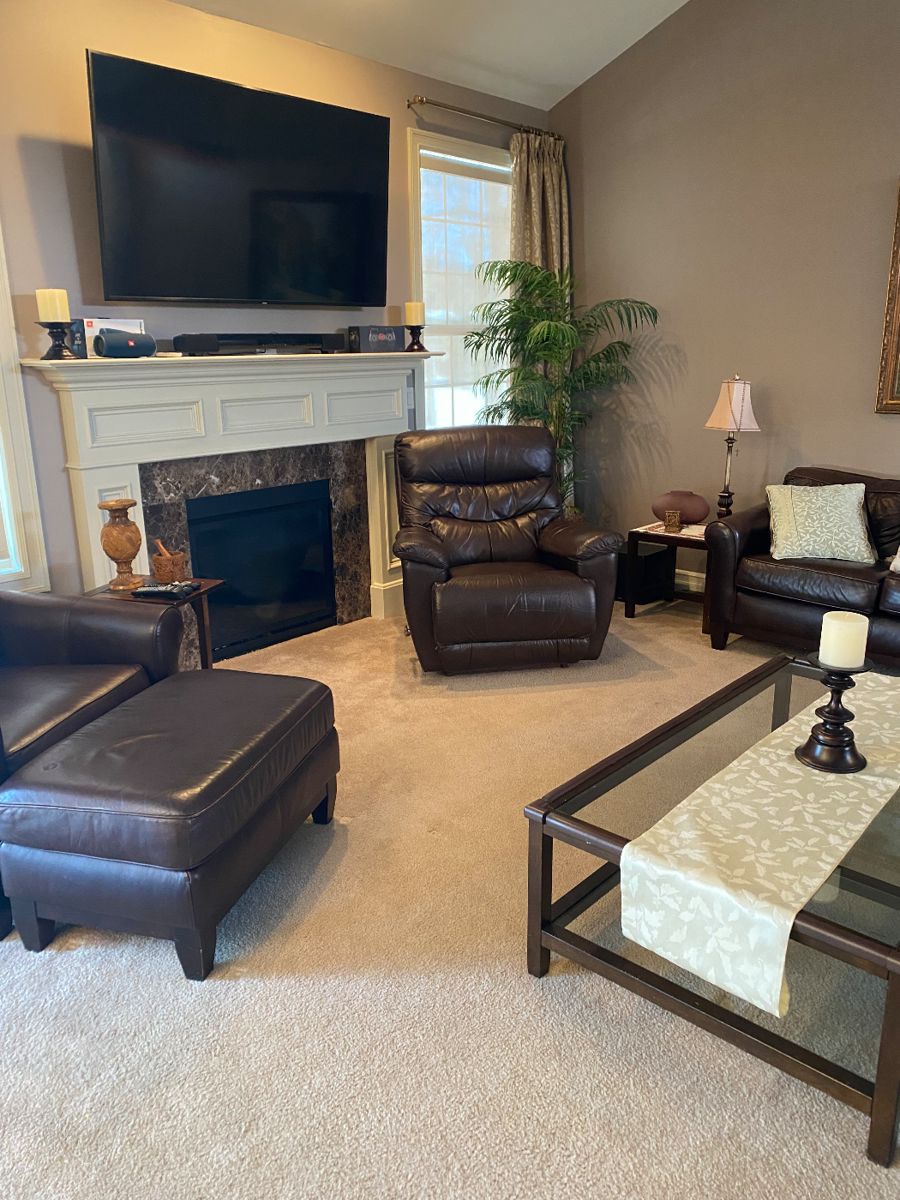 Bernhardt leather furniture (great condition), Coffee table and 2 end tables, Large smart tv, Yamaha sound bar, Bernhardt marble top night stands (40x20x34), Smart TV’s (4), DeLonghi dehumidifier (like new), King size beds, Leather lazy boy rocker recliner, Beautiful wood carved vintage armoire, New couch with accent pillows, Window bench, Wing back reclining chair, Large framed mirrors, antique beveled mirror, World globe on stand, Ornate glass/wood curio cabinets ( large and very nice pieces of furniture), Dresser with mirror ( heritage)also has protector cover, Robot roomba, India house wool rug, Desk with protective cover, desk swivel office chair, Wood storage...
