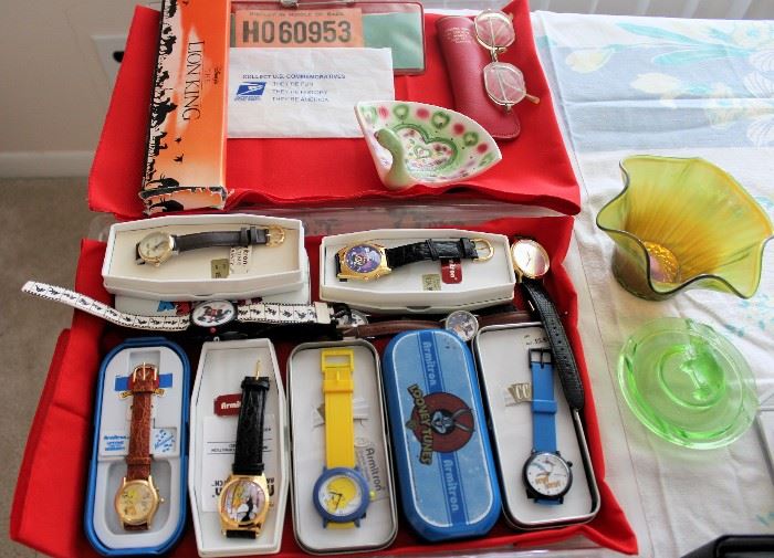 Nice clean sale, items are in excellent condition! House is also listed for sale so come and take a look! Collection of Disney watches, Star Wars Figures / sets, K-mart employee Promo movie buttons/pins, some vintage dolls, starburst wall clock, ornate plastic framed Mirror, Buescher Saxophone, clean linens, two full size Maple beds with mattresses, dresser w/ mirror, chest of drawers, nightstand, Temple Loveseat and Sofa set (made in NC), glass front cabinet, Barrister Bookcase ( 4 Tier), retro 70's terrarium, vintage stereo console, records, books, bookcases, Maple desk, Maple kitchen table and chair set, retro kitchen set in basement,...