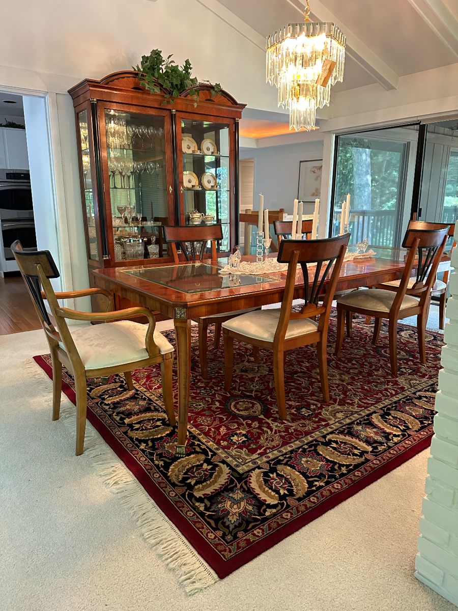 THIS SALE FEATURES NICE FURNISHINGS, AREA RUGS AND DECOR. THE USE OF SHOE COVERS WILL BE REQUIRED. ALSO THERE ARE SEVERAL STEPS TO ENTER INTO THE HOME. PLEASE BE CAREFUL. CENTURY FURNITURE-BEAUTIFUL DINING TABLE W/6 CHAIRS, LEAFS & PADS, CENTURY FURNITURE-CHINA CABINET, CENTURY FURNITURE L T DESIGNS CREAM SOFA & LOVESEAT, 100% WOOL ARE RUG 7’ 9”X 9’8”, 2 100% WOOL RUNNER RUGS 2’6”X 12’, WATERFORD CRYSTAL & MARQUIS BY WATERFORD, STEMWARE, CRYSTAL AND CLEAR GLASS, ASIAN INSPIRED BLACK LACQUER CABINET, ASIAN INSPIRED CABINET, BLACK LEATHER LOVESEAT AND SOFA BY ENGLANDER’S, CHOPIN HEAD BUST, GLASS & METAL END TABLES &...