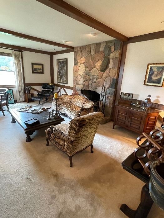 Great Bell Rd In Southfield Estate Sale ! - Vintage Upholstered Sofa & 2 Chairs - Mosaic Tile & Walnut Coffee Table Victorian Sofa & Arm Chair - Eames Style Lounge Chair & Ottoman By Plycraft - Upright Piano By Sohmer In Walnut - Slate Top Games Table & 4 Chairs - Dining Table & 6 Chairs - Carved Oak Buffet & Hutch Cabinet - Set Of 4 Leather & Chrome Dinette Chairs By Marcel Breuer - 4 Pc King Bedroom Set By Fancher - McIntosh MAC 1700 Stereo Receiver - Dual 1219 Turntable - Royal Copenhagen “ Blue Fluted...