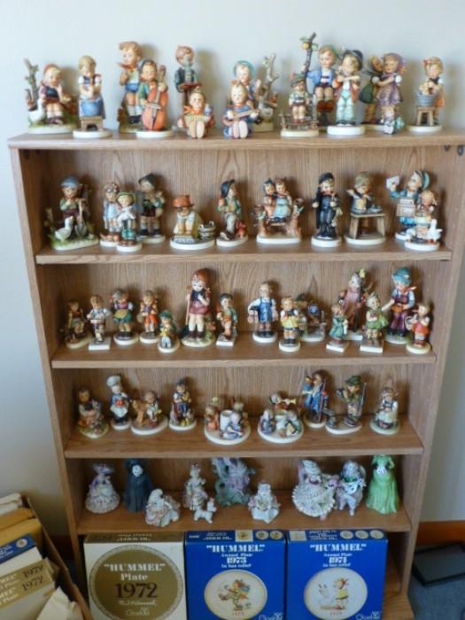 NICE SALE! Large Hummel collection, four shelves full as well as Hummel collector plates, some very beautiful Rhinestone jewelry, costume jewelry, HUGE collection of sports collectibles, TONS of boxes of trading cards in all sports genres (mostly 80's), Nascar collectibles, Die Cast cars, Hockey and Basketball collectible items, 4 Guitars (Gibson and Les Paul Models), Casio Keyboard and stand, some Breweriana items, Nice Lazy Boy Sofa and matching chair, round Oak kitchen table and chair set with matching china cabinet, Roll Top desk, small tables, lamps, display cabinet, bookshelves, books, china set, flatware sets, stemware, crystal, vintage linens, fur jacket,...