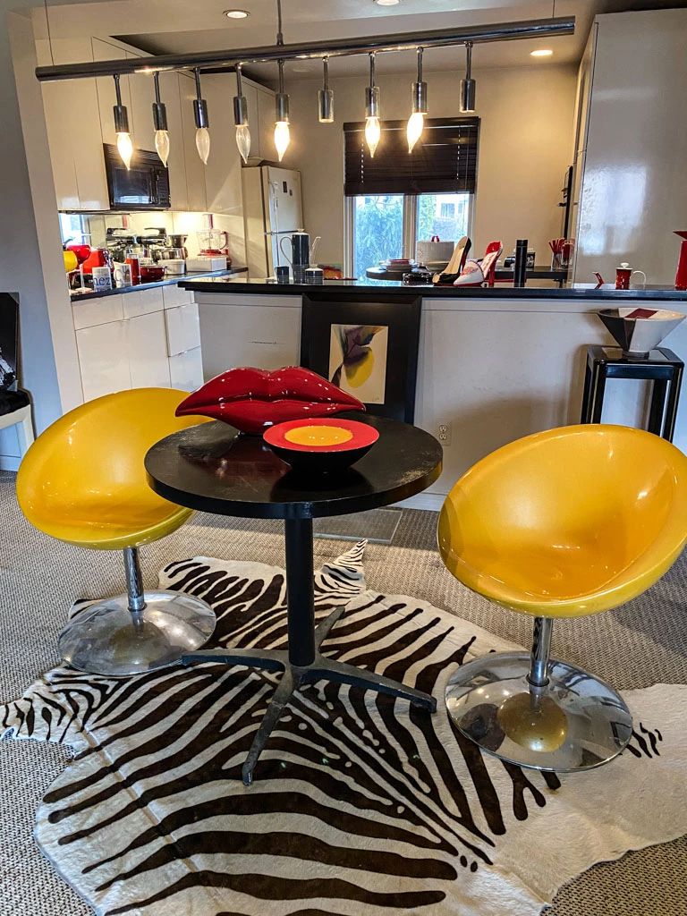 Main floor Sism bar set, KitchenAid food processor, Starbucks city mugs, hand blown glass drinkware, space age barrel chairs, tulip tables, Bob Hope marble book ends, costume jewelry, matching recliner and sofa, zebra hide rug, Kosta Boda candle holder, Mixmaster mixer, Christian Dior wine glasses, Versace wine stoppers, and more! Second floor Imogene Farnsworth prints, women’s clothing, shoes, and purses with brands such as: Alice and Olivia, Dolce and Gabbana, Theory, Vince, St. John, Ralph Lauren, Dana Buchanan, Emmanuel, Saks Fifth Avenue and Neiman Marcus cashmere, Calvin Klein, Lululemon, Juicy couture, Cole Hann, Stewart Weitzman, Coach, Yves Saint Laurent, and...