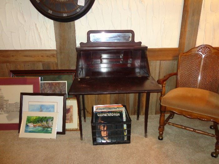 Clean estate sale featuring quality items. Household and kitchen items including Pfalzgraf Garden Party dishes and completer pieces, Oneida Rattan siverware and special 116 pieces of vintage Oneidacraft Capistrano silverware. Vintage Farberware cookware in very good condition. Lovely Chantal whistling teakettle in excellent condition. Several pieces of mixing, cooking and bakeware vintage and new including FireKing, Pyrex, Corningware, Wilton and Foley. Kitchenaid stand mixer. Graniteware, Calaphalon and stainless roasters and canning/stock pots in very good condition. Many vintage 60's serveware pieces in like new condition including hammered aluminum. Lovely glassware including depression, serveral EAPC pieces, pattern glass, full set of...