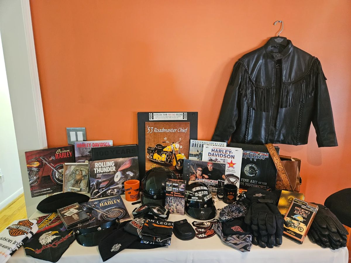 WATERFORD ESTATE SALE HARLEY DAVIDSON PUB TABLE AND STOOLS HARLEY DAVIDSON GEAR, BOOKS, GLOVES, ACCESSORIES, JACKETS AND MORE BARNETT CROSSBOW RX-150 2 CREAM COLORED LEATHER RECLINING SOFAS SOUTHWEST RUGS AND BLANKETS MINOLTA SRT-101 35 MM CAMERA WITH EXTRAS 2 ROOMBA ROBOT VACUUMS OFFICE SUPPLIES BOOKS EPSON EX-2800 PRINTER MENS HARLEY DAVIDSON BOOTS MENS CLOTHING XL WALLETS MOTORCYCLE & AUTO RELATED T SHIRTS DIE CAST CARS AND MOTORCYCLES 2 QUEEN SIZE PILLOW TOP BEDS MID CENTURY DRESSER LINENS WESLO PURSNIT E-28 EXERCISE BIKE LOTS OF NEW IN BOX ITEMS MENS COLOGNE COPPER AIR FRYER BASKET CAST IRON PANS POWER SMOKELESS GRILL...