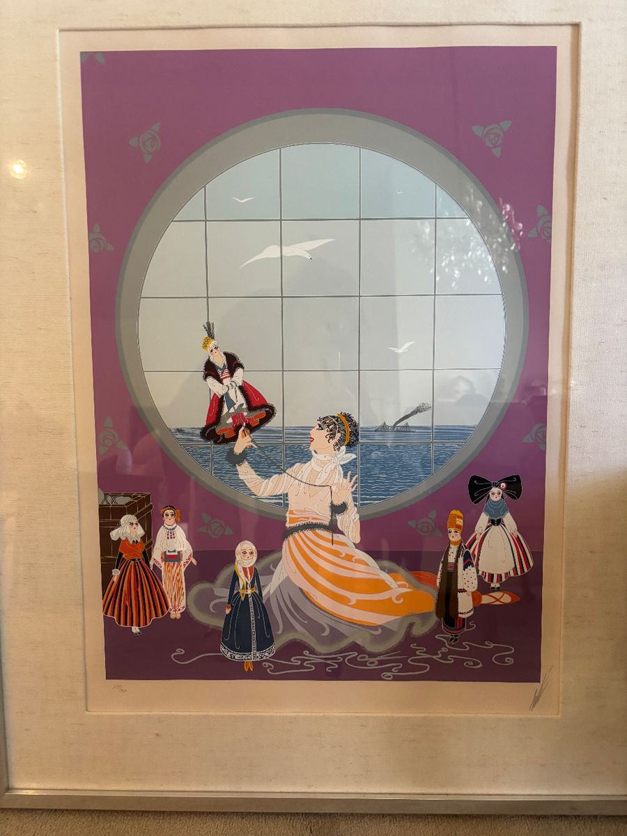 A gorgeous West Bloomfield curated home. This treasure trove has been lovingly cared for by the owners daughters for the past 20 years. The mother was an interior designer. The house has great art pieces. A signed Erte, Barbara Streisand 3’x3’ cover art, Kate Bush 3’x3’ cover art, Carolyn Cold quilt paintings, 1938 Huge French Hat advertisement, signed lithograph 47”x 63”. A rare antique Hubley lamp and shade, Victorian glassware and decor, antique and vintage purses, vintage Louis Vuitton man’s wallet, vintage designer eyeglasses, Paul Franklin style Rattan chairs, French Chandelier, Garofano Majolica Carnation Set, Lenox Autumn Pattern for 8,...