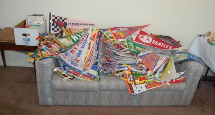 Great estate sale in Ypsilanti. The family has been in the home since 1952. Huge vintage Pennant collection. Over 500 pennants. 1950's to late 1980's. Lots of sports pennants - hockey, football, basketball, super bowl, college and more. Souvenir & travel pennants - northen Michigan, Ohio, circus, Elvis, Disney World, The Beatles, Auto World Flint, Canada, Caves, Hamtramck Festival, Dearborn, Indians and so many more. This is just a small hint of whats available. Tons of unique items. Including but not limited to: Books-pulp, collectible, train and more. VHS and DVDs. Records. Household, kitchenware, dishes, glasses, novelty glasses, stamp collection,...