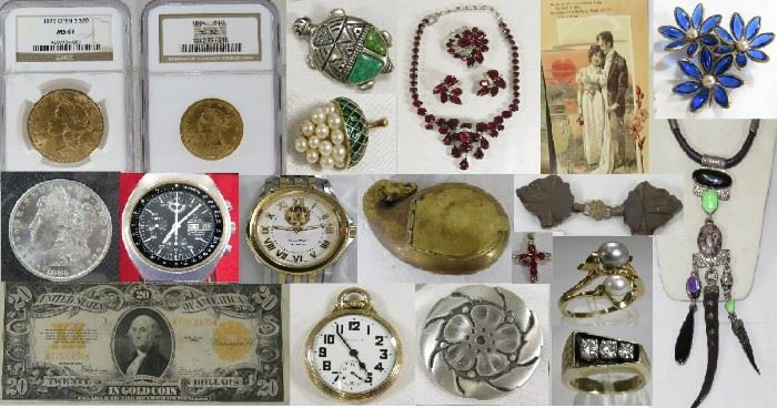 Gold & Silver coins, Fine Diamond Jewelry, Watches, Costume Jewelry Live Auction with online bidding