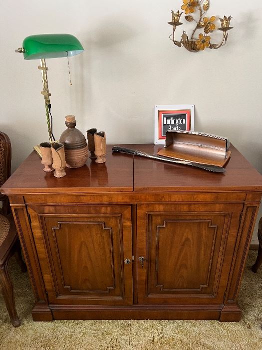 Nice sale with LOADS of clothing including vintage, nice amount of costume jewelry, sofa, living room chairs, beautiful hutch, dining room table and chairs, dish set, glassware, pair of crystal lamps, LOADS of books - cds - dvds, cassettes, albums, wall art, mid century furniture, file cabinets, beds, linens, dressers, bike, book shelves, desk, golf clubs, golf balls, baseball caps, kitchen items, tea cart, office supplies, lawnmower, snowblower, lawn and garden, beauty supplies, bed side tables, flatware, buffet server, lamps, vacuum, maps, skis, magazines, MUCH MUCH MORE!