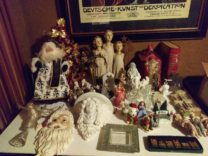 Christmas items, Angel collection, Disney items, Coca-Cola, Department56 village pieces, Books, CDs, Art Work, some Kitchen items.