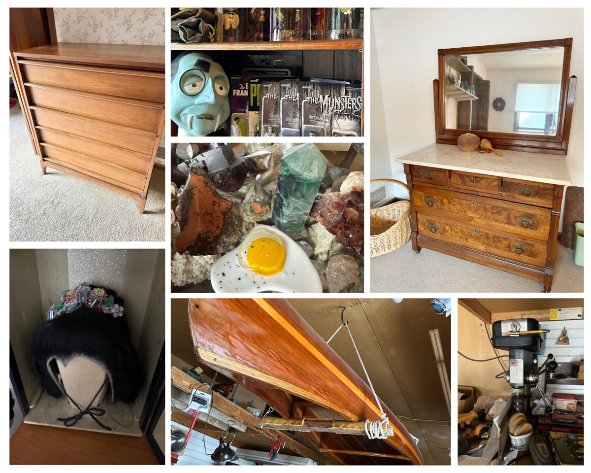 PLEASE NOTE parking may be challenging as this is a cul de sac. Please be respectful of driveways and mailboxes. Thank you! This combined sale features items from two estates. Some items include antique marble top dressers, monster movie collectibles and framed art, extensive rock collection, Asian art and collectibles. (Netsuke, carvings, Japanese prints), pop figures, books, clothing, kitchen items, large selection of tools, furniture, decor, holiday and much more. Details and photos coming soon!