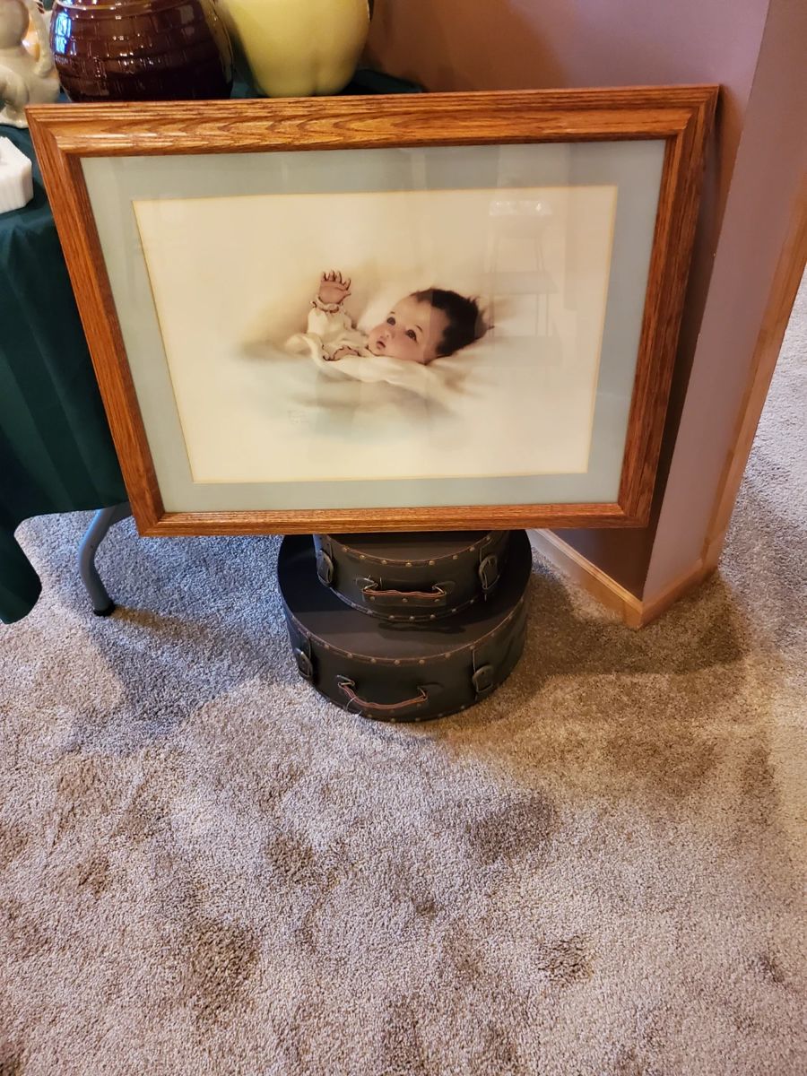 This Sale Pretty Much Has it All! From Antique to Fine Furniture to Mid Century, Nice Selections Thru-out this Beautiful Home, Great Sofa with Matching Chair and Large Ottoman, Wonderful High-top with 4 Stools and a Hidden Leaf in Black, 3 Stack ¾ size Globe-Wernicke Lawyers Bookcase, Large Vintage Metal Trunk Top as well as Several Decorative Trunks, Claw Foot Glass Ball Piano Stool, Fun Vintage Side Tables, Antique Oak Table, Carved rocker, Nice Antique Display Cabinet, Oak Full size Bed, Cute Spoon Carved Table, Very Cool Jacob Becker and Sons Massive Safe!! Vintage Metal Baby Crib, Wooden Highchair, American...
