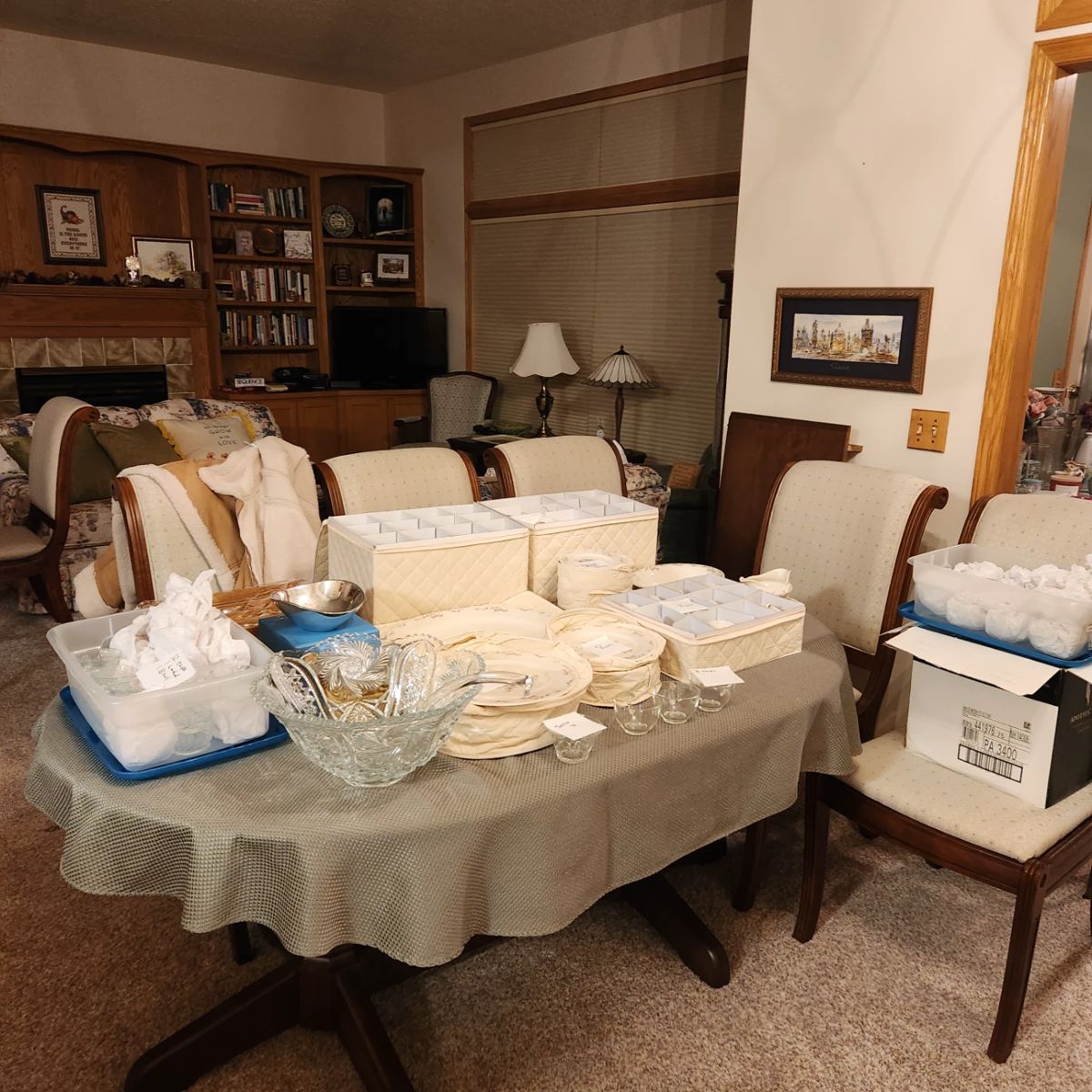 This is the sale you want to shop if you are looking for high quality furniture in excellent condition. Everything has been taken very good care of. No particalboard here! Beautiful Dining Room Table! Dishes, china, baking supplies, spices, books books books, TV, picture frames, bedroom set, Christmas ornaments and decor (some vintage), sebo vacuum, costume jewelry, Business casual clothing for a woman size small/medium in great condition, priced to sell! Coldwater Creek style. Everything you need to furnish your new apartment, townhouse or newly finished basement!