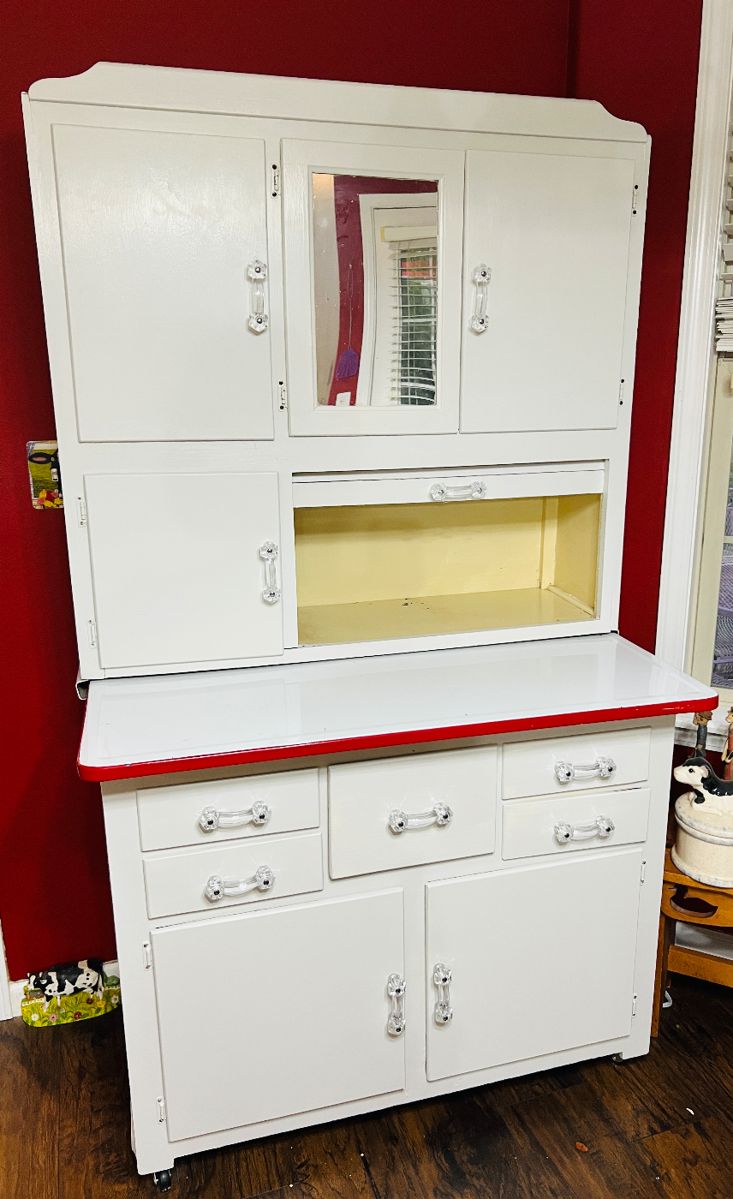 Kitchen & Appliances: Maytag Washer & Dryer, Maytag refrigerator, Vintage Hoosier kitchen cabinet, Large selection of Christmas dinnerware & glasses, Serving platters, Cookie sheets, Baking pans, Muffin pans, Pantry & food items, Large selection of patriotic dinnerware & kitchen accessories, Tupperware, Corelle dishes, Toaster, Keurig coffee maker, InstantPot, Selection of cow-themed kitchen decor, and more! Furniture & Decor: Vintage side board, Vintage kitchen cupboard, Small storage cupboard, Antique dropleaf secretary, Dropleaf desk, Desk chair, Media stand, Media tower, Kerosene lamps, Assorted table lamps, King bed, Accent tables, Jewelry armoire, Chest of drawers, and more! Jewelry: Gold, Sterling silver, Bangles, Watches,...