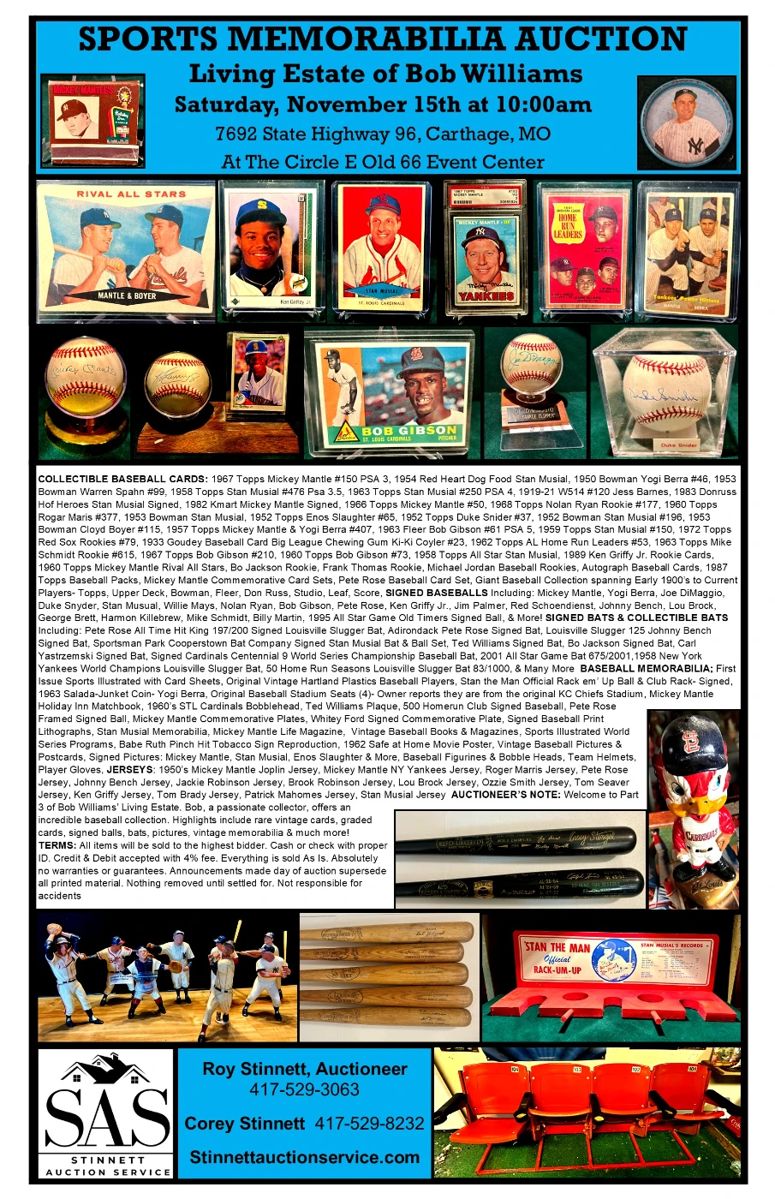 COLLECTIBLE BASEBALL CARDS: 1967 Topps Mickey Mantle #150 PSA 3, 1954 Red Heart Dog Food Stan Musial, 1950 Bowman Yogi Berra #46, 1953 Bowman Warren Spahn #99, 1958 Topps Stan Musial #476 PSA 3.5, 1963 Topps Stan Musial #250 PSA 4, 1919-21 W514 #120 Jess Barnes, 1983 Donruss Hof Heroes Stan Musial Signed, 1982 Kmart Mickey Mantle Signed, 1966 Topps Mickey Mantle #50, 1968 Topps Nolan Ryan Rookie #177, 1960 Topps Rogar Maris #377, 1953 Bowman Stan Musial, 1952 Topps Enos Slaughter #65, 1952 Topps Duke Snider #37, 1952 Bowman Stan Musial #196, 1953 Bowman Cloyd Boyer #115, 1957 Topps...