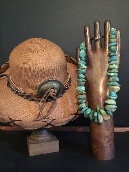 This estate sale is located in beautiful home with double garage and a large basement, it also has a back patio. You will find everything from antiques to household items to lawn and garden to beautiful jewelry., Several pieces of old pawn Native American jewelry from Santa Fe including, sterling, turquoise, coral, amber, and lapis, Rough cut polished turquoise necklace, Sterling coral and lapis heart pendant, Large gold amber pendant, Faceted gold amber necklace, Red amber necklace, Four strand pearl bracelet with 14K sapphire clasp, 18in freshwater Chinese pearls, Eggplant pearl earrings and necklace, Ivory beaded necklace, Robert Redford Sundance...